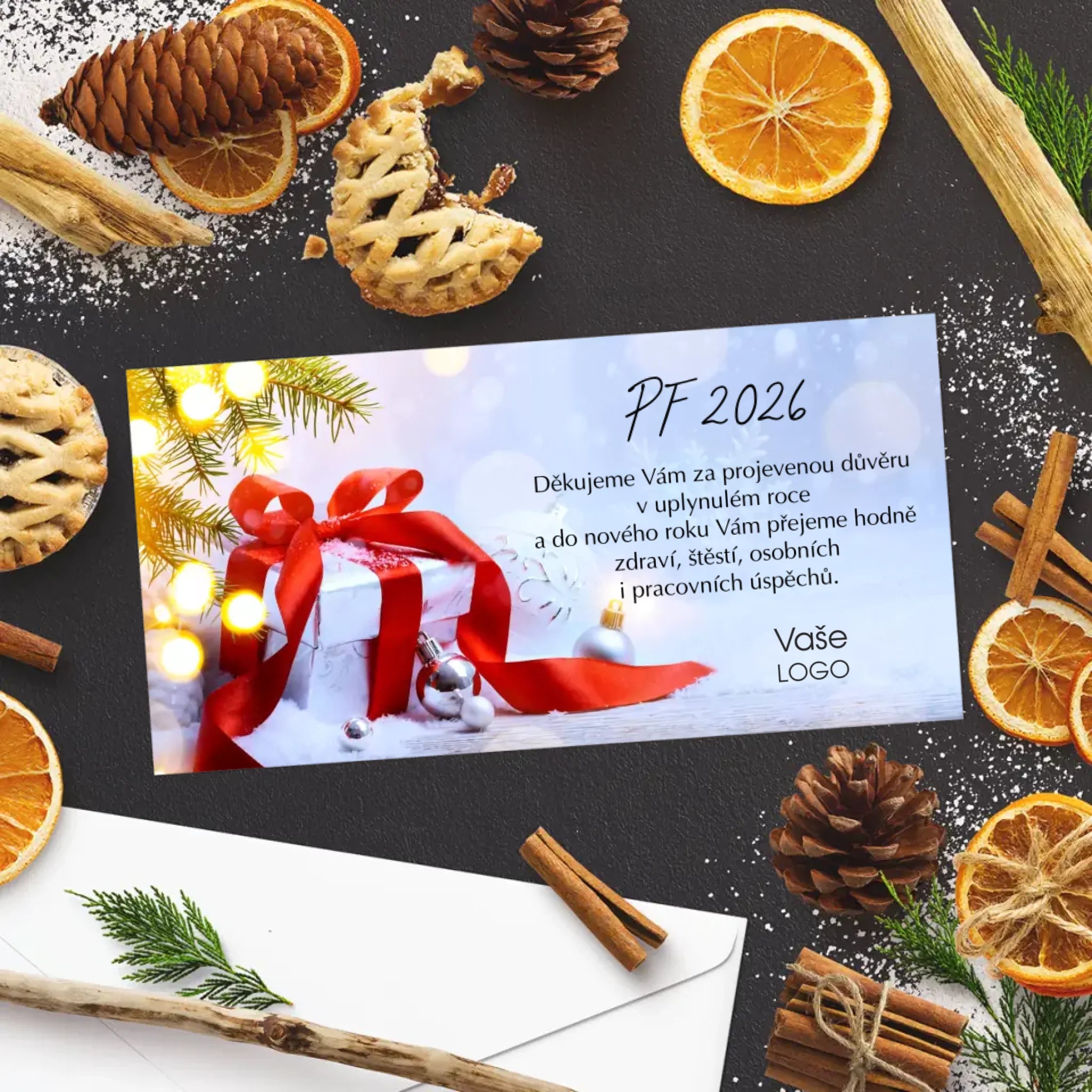 Tištěná nebo Elektronická novoročenka pro rok 2025 v podobě karty s vánočním motivem.