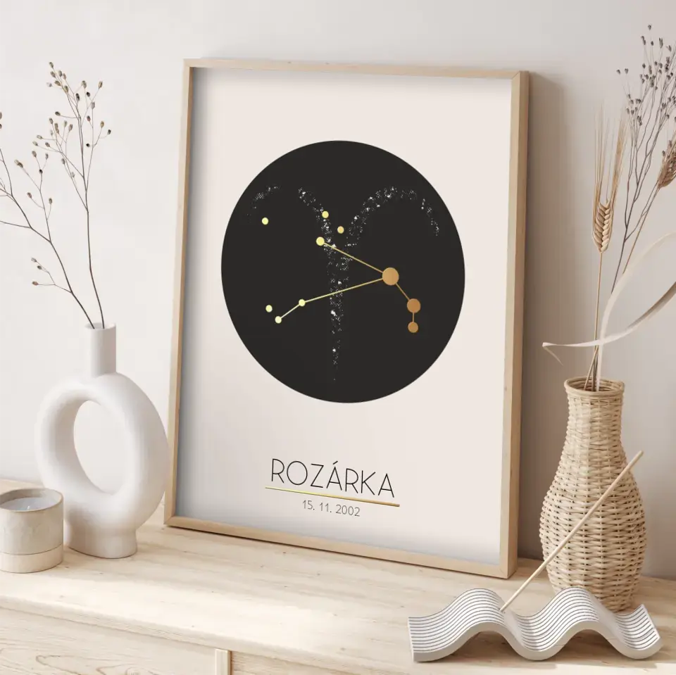 Pokud přemýšlíte čím udělat radost sobě či Vašim nejbližším, pak je tento plakát to pravé! Vyberte znamení, barvu pozadí, vyplňte jméno a datum narození své, či jiného člena Vaší rodiny. Vytvoříte tak unikátní výtisk, který bude připomínat Vaši jedinečnost, či jedinečnost osoby které bude plakát věnován.