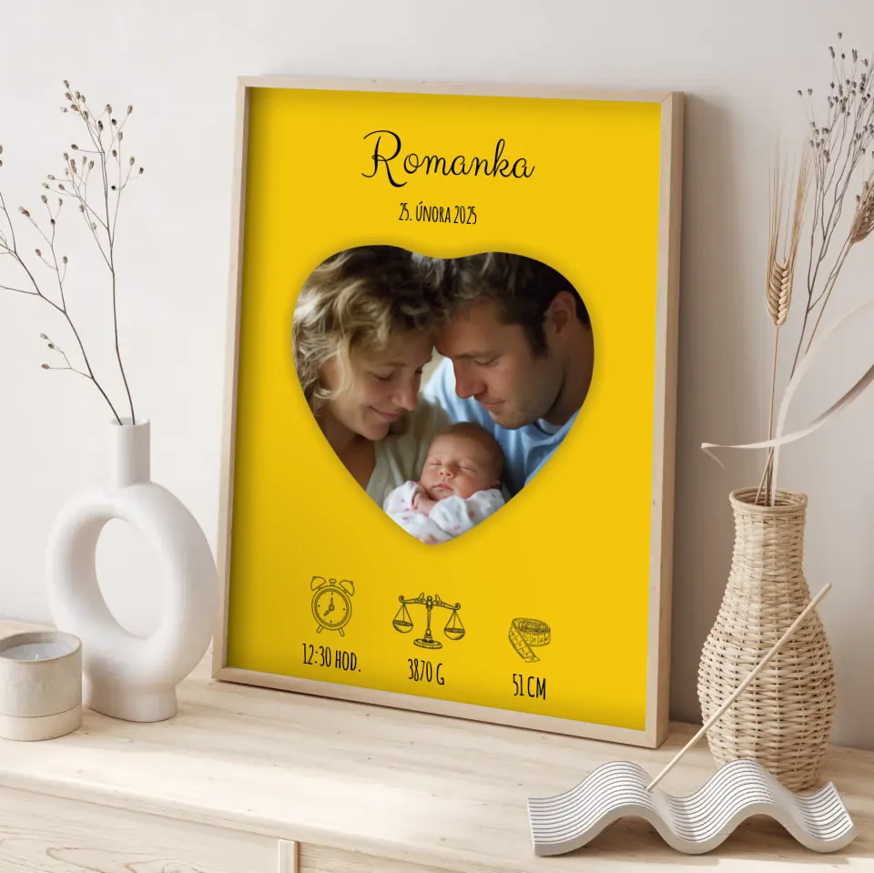 Vytvořte si vlastní plakát k narození dítěte s vlastní fotografií. Náhled uvidíte v reálném čase přímo na vašem monitoru.