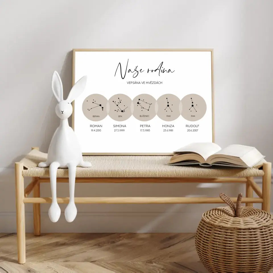 Vytvořte si vlastní plakát Znamení zvěrokruhu Naše rodina 2-5 členů. Náhled uvidíte v reálném čase přímo na vašem monitoru.